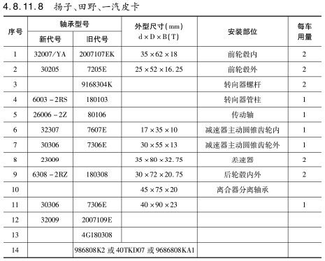 | 序号(hao) | 軸(zhou)承型号(hào) | 外(wài)形尺寸(cun)(mm) | 安(ān)裝部位(wèi) | 每(měi)車用量(liàng) | |